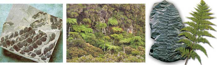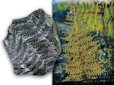 Diese Pflanze, Senftenbergia plumosa, besteht aus mehrteiligen Blättern und stammt aus der Karbonzeit (vor 300 Millionen Jahren). | "Lebende Fossilien" stellen Millionen Beweise dar, die die Evolutionstheorie widerlegen. | Ein Riesenfarn, der vor 290-365 Millionen Jahren lebte, unterscheidet sich nicht von heutigen Exemplaren. |
