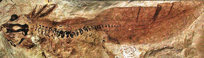 Insekten-Fossilien, die über 125 Millionen Jahre alt sind, zu ca. 100 Familien und 500 verschiedenen Arten gehören, wurden in der chinesischen Region Hebei gefunden. Nirgendwo sonst auf der Welt fand man eine solch großartige Artenvielfalt. Das Photo zeigt die äußerst feinen Details der Flügel. Die hier gefundenen Fossilien zeigen ganz klar, daß Insekten bis auf den heutigen Tag keine Veränderungen aufweisen. | Dieses Fossil eines Seepferdchens, gefunden in Rimini, Italien stammt aus dem frühen Pliozän vor 4 -5 Millionen Jahren. Die Art gibt es heute noch, sie lebt in tropischen und subtropischen Gewässern überall auf der Welt. |