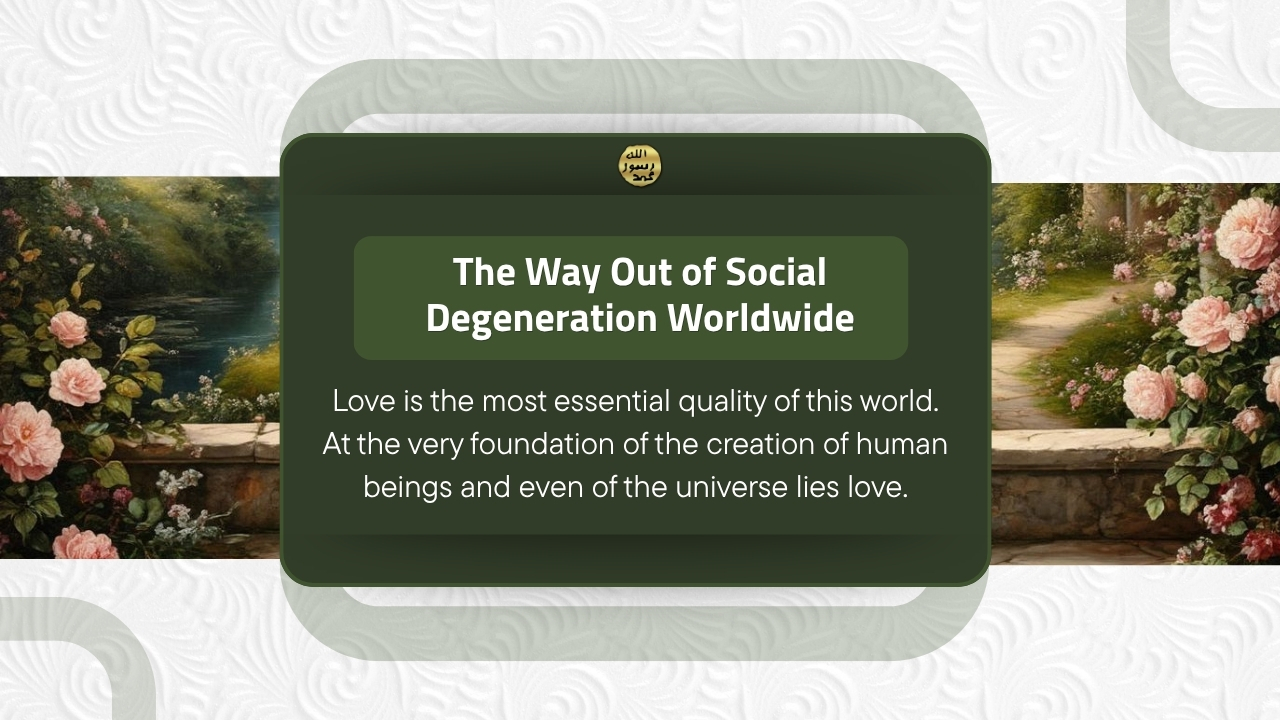 Most people do not know sincere love. Sincere love would not be formed when one is far removed from religion and does not remember God. Both Darwinist, materialist system and the system of the bigotry would kill love from both sides. Only with the system of the Mahdi it would be possible to revive love.