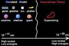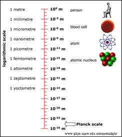 Although it is not possible to see the size of the threads in the String Theory, the only theory to bring theories such as Einstein's theory of general relativity and quantum mechanics together in a coherent way, it can still be calculated mathematically. These strings, which scientists regard as the material from which space and time are woven, are just 1.6x10-35 m (0.000000000000000000000000000000000016 meters) in size.5 This, known as Plank's length, is the smallest known, being just 10-20 of the protons that make up the nucleus of that atom.6 If an atom were to be magnified to the size of the Solar System, each one of these strings would be no bigger than a tree. 7 Bearing in mind that an atom is 100,000 times smaller than the smallest thing that can be seen with the naked eye, the minute scale of these strings can be more easily grasped.
