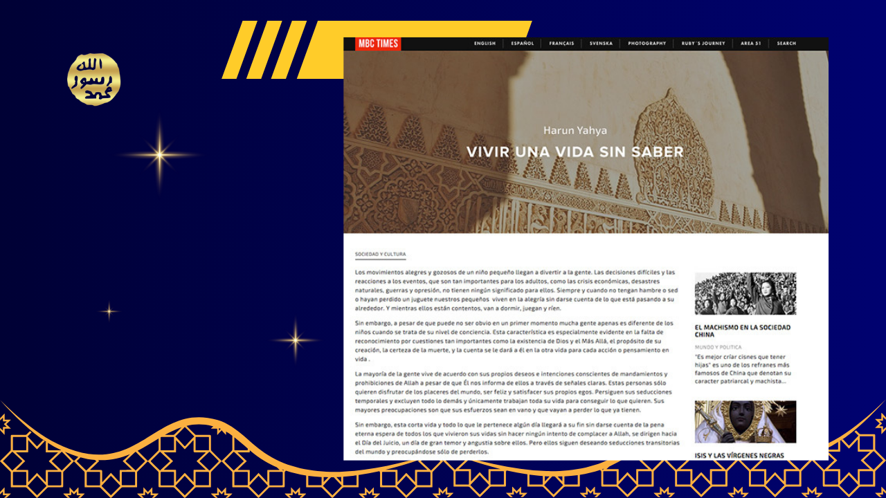 Las personas que no creen en Dios, así como aquellos que dicen creer, pero sufren de la falta de una sincera y fuerte fe, viven en mundos diferentes. Estas personas, también, miran a su alrededor con sus ojos y oyen con los oídos, pero tienen un muy diferente percepción. Ya que ellos no creen verdaderamente en Dios y no se rinden al destino creado por Él creando un dolor constante y melancólico -, así como una preocupación sin fin - que los engulle. Ellos se quejan constantemente, se olvidan de que todo está bajo el control de Dios y muestran un carácter desconfiado especialmente en tiempos de dificultad. Están enfadados, celosos, son egoístas, desconsiderados y no hacen un esfuerzo para ocultar estas emociones ni para librarse de esos sentimientos negativos. Sin embargo, es muy fácil deshacerse de tales características malas.