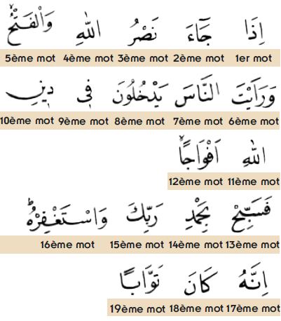 La sourate an-Nasr, la dernière sourate révélée comprend 19 mots.