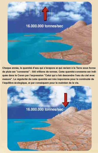 Cette quantité de pluie définie a été mesurée par la recherche moderne. On estime qu’en moins d’une seconde, environ 16 millions de tonnes d’eau s’évaporent de la Terre, soit 513 trillions de tonnes d’eau par an. C’est aussi la quantité de pluie qui tombe sur la Terre chaque année. Ainsi, l’eau circule continuellement selon un cycle équilibré, une "mesure". La vie sur Terre dépend de ce cycle de l’eau. Même si toute la technologie disponible dans le monde devait être employée dans cet objectif, ce cycle ne pourrait être reproduit artificiellement.