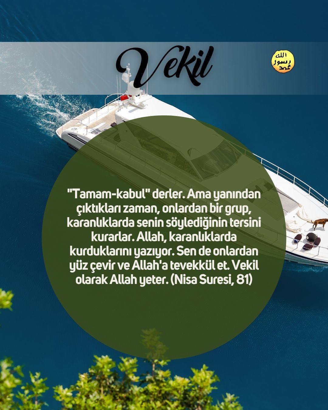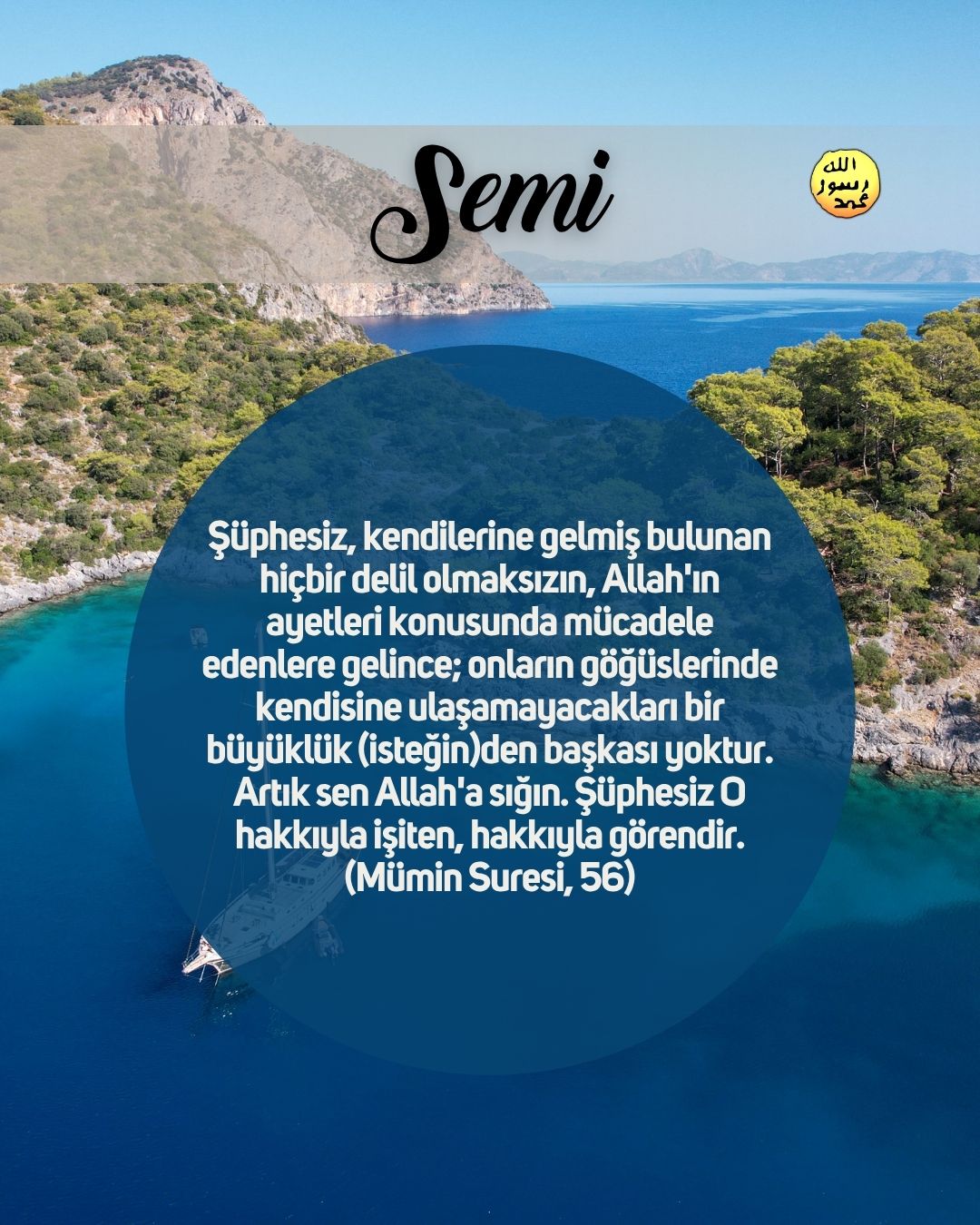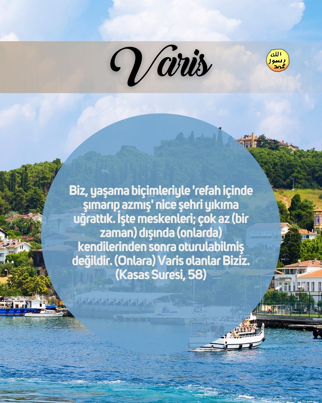 Nur Allah, göklerin ve yerin nurudur. O'nun nurunun misali, içinde çerağ bulunan bir kandil gibidir; çerağ bir sırça içerisindedir; sırça, sanki incimsi bir yıldızdır ki, doğuya da, batıya da ait olmayan kutlu bir zeytin ağacından yakılır; (bu öyle bir ağaç ki) neredeyse ateş ona dokunmasa da yağı ışık verir. (Bu,) Nur üstüne nurdur. Allah, kimi dilerse onu Kendi nuruna yöneltip-iletir. Allah insanlar için örnekler verir. Allah, herşeyi bilendir. (Bu nur,) Allah'ın, onların yüceltilmesine ve isminin zikredilmesine izin verdiği evlerdedir; onların içinde sabah akşam O'nu tesbih ederler. (Nur Suresi, 35-36)