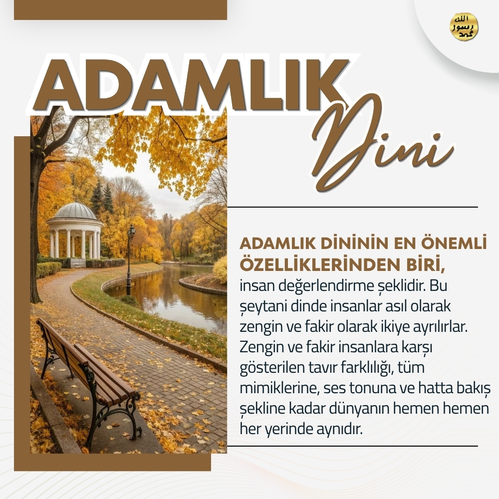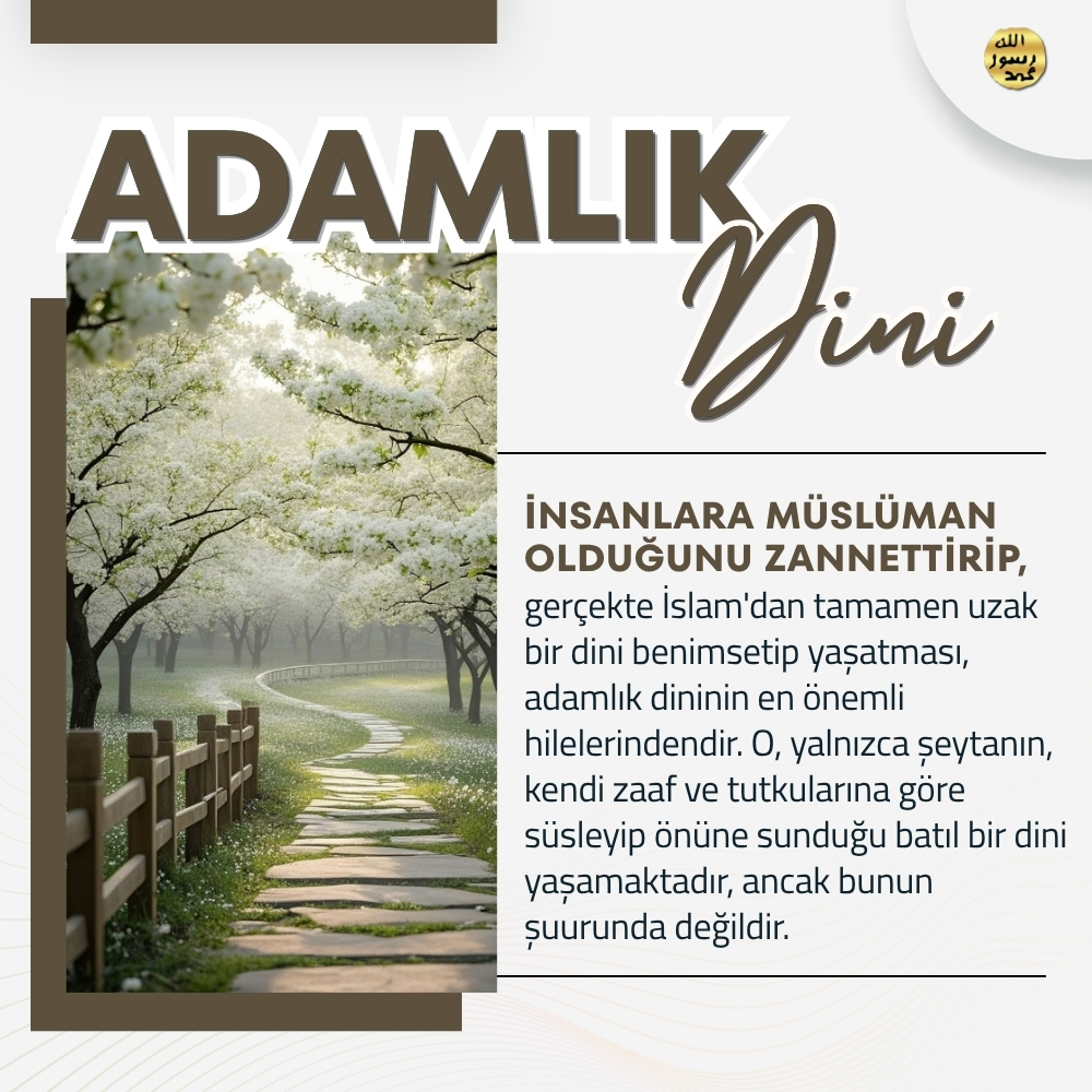 Adamlık Dini İnsanlara Müslüman olduğunu zannettirip, gerçekte İslam'dan tamamen uzak bir dini benimsetip yaşatması, adamlık dininin en önemli hilelerindendir. O, yalnızca şeytanın, kendi zaaf ve tutkularına göre süsleyip önüne sunduğu batıl bir dini yaşamaktadır, ancak bunun şuurunda değildir.