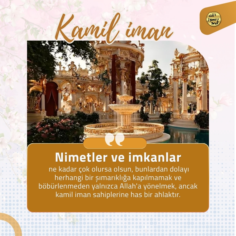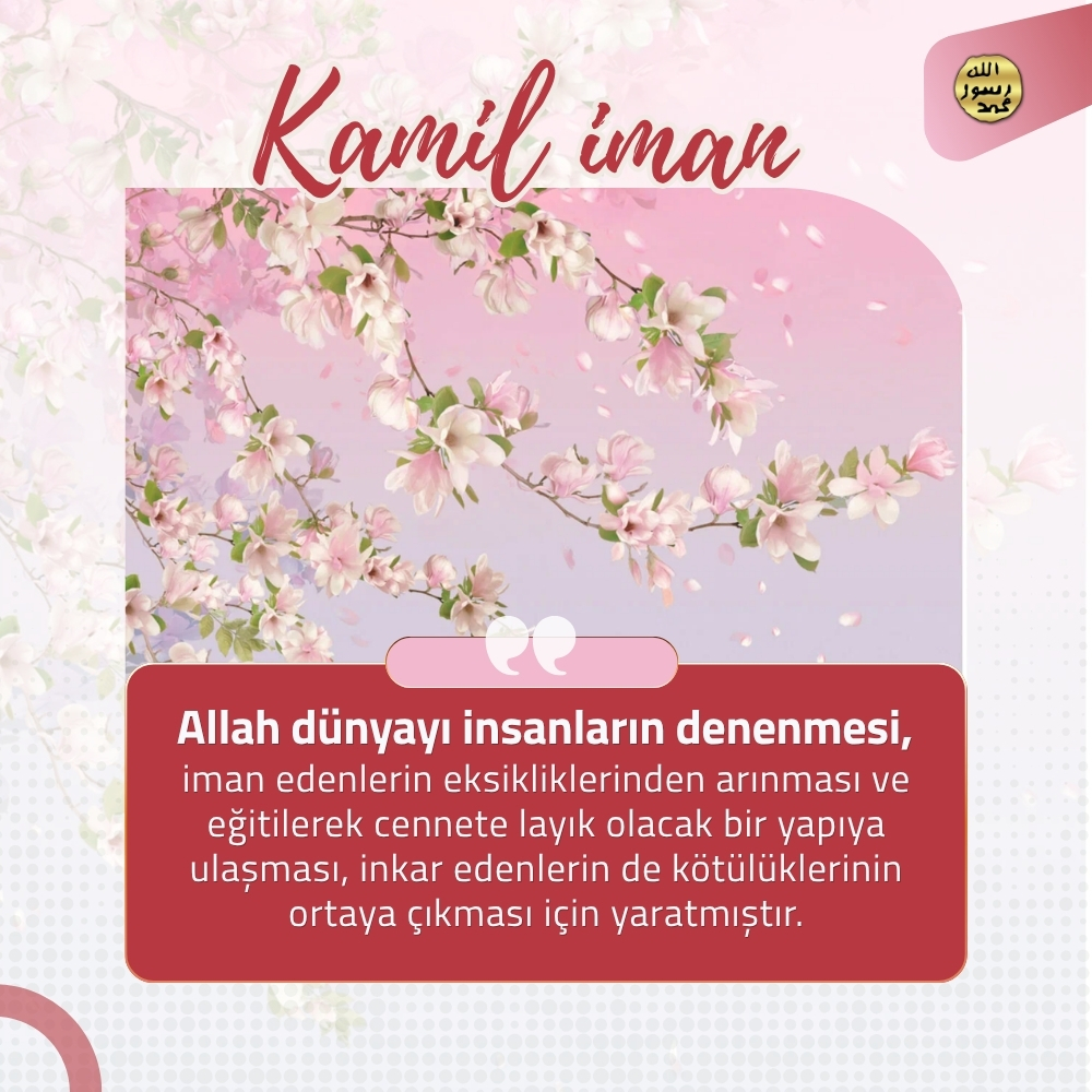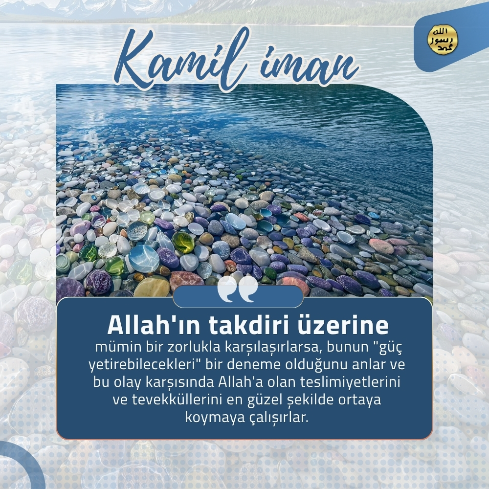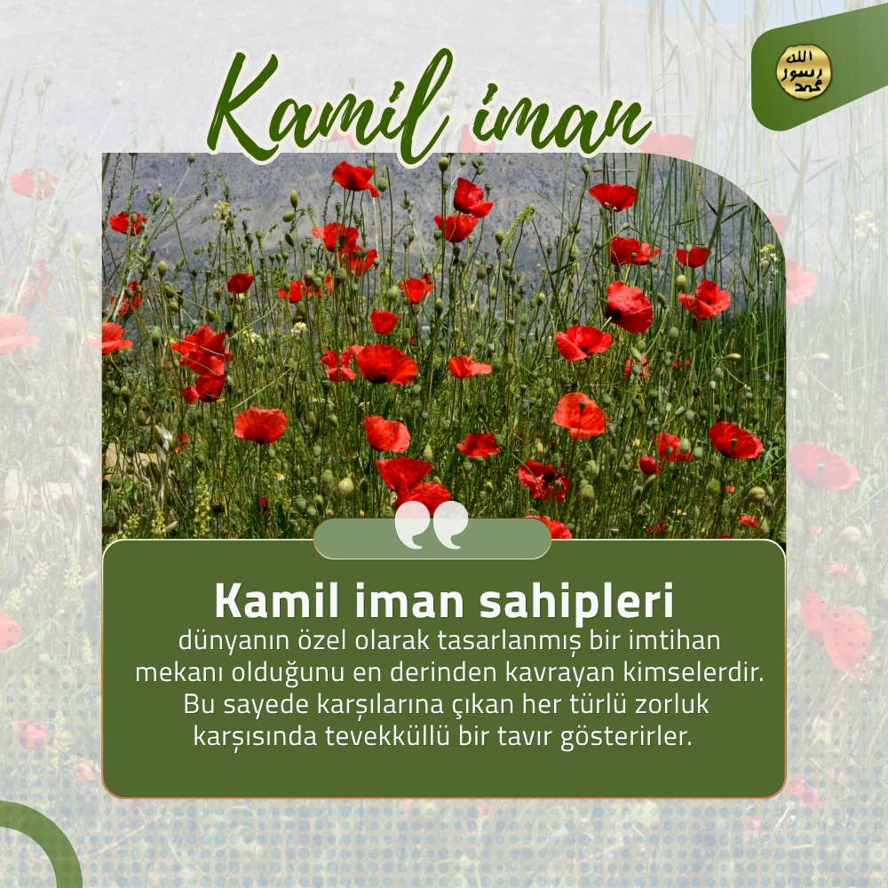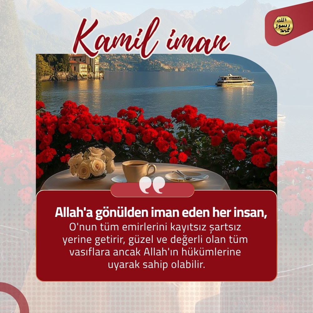 Kamil İman Kuran Ahlakı ve Derin Düşünmek Allah, Kuran'ı insanlara yol gösterici olarak indirmiştir. Kuran ahlakının tam anlamıyla yaşanması ancak ayetlerin hepsinin uygulanması ile mümkündür. "Allah'a iman etmek",kişinin Allah'ın herşeyin tek yaratıcısı, tek sahibi ve tek hakimi olduğunu kavramasıdır. "Allah'a teslim olmak",Allah'tan çok korkmakla ve O'na herşeyden ve herkesten çok bağlanıp, O'nu çok sevmekle mümkün olur. Allah'a teslim olmuş insan, her ne olursa olsun, teslimiyetli tavrından taviz vermez ve her zaman için Allah'a karşı boyun eğici, itaatli ve şükredici bir tavır içerisinde olur. Allah'ın büyüklüğünü, gücünü ve sonsuz aklını kavramış kamiliman sahipleri, Rabbimiz'e karşı "saygı dolu bir korku" duyarlar. Kamil iman sahiplerinin Allah'tan içleri titreyecek kadar güçlü ve saygı dolu bir korkuyla korkmalarına vesile olan Allah'ı gereği gibi takdir edebilmeleridir. Kamil iman sahibi her durumda vicdanının sesini dinler. "Vicdan" her zaman Allah'ın emirleri doğrultusunda kişiyi sürekli olarak doğruya davet eden bir sestir. Kamil iman sahiplerinin insanlara da olan sevgilerindeki ölçü, onların Allah'ın emrettiği ahlakı üzerlerinde ne derece taşıdıklarına bağlıdır. Allah dünyayı insanların denenmesi, iman edenlerin eksikliklerinden arınması ve eğitilerek cennete layık olacak bir yapıya ulaşması, inkar edenlerin de kötülüklerinin ortaya çıkması için yaratmıştır. Kamil iman sahiplerini gaflet içindeki insanlardan ayıran en büyük farklardan biri, dünyaya değil, ahirete yönelik bir hazırlık içinde bulunmalarıdır. Allah'a gönülden iman eden her insan, O'nun tüm emirlerini kayıtsız şartsız yerine getirir, güzel ve değerli olan tüm vasıflara ancak Allah'ın hükümlerine uyarak sahip olabilir. Kamil iman sahipleri sürekli olarak vicdanın sesine kulak verirler. Çünkü vicdan, mümini doğruya, güzel olana çağıran Allah'ın sesidir. Bu nedenle de vicdan, aynı zamanda kamil imanın anahtarıdır. Kamil iman sahipleri Kuran'da, "Öyleyse güç yetirebildiğiniz kadar Allah'tan korkup-sakının..." ayetinde belirtildiği gibi tüm güçleriyle Allah'tan korkup sakınırlar ve sonsuz mekanlarının cennet olmasını umarlar. (Teğabün Suresi, 16) Allah'a gönülden iman eden her insan, O'nun tüm emirlerini kayıtsız şartsız yerine getirir. İnsan güzel ve değerli olan tüm vasıflara ancak Allah'ın hükümlerine uyarak sahip olabilir. Allah Kuran'da doğruluğu, adaleti, sabrı, fedakarlığı, vefayı, sadakati, kararlılığı, itaati, alçakgönüllülüğü, hoşgörüyü, şefkati, merhameti, öfkeyi yenmeyi ve daha birçok üstün ahlak özelliğini emreder. "Kamil iman" sahibi sabrın en fazlasını, fedakarlığın en güzelini, teslimiyetin en mükemmelini, Allah sevgisinin en şiddetlisini yaşamaya gayret eder, bu ahlaki vasıfları ile öne geçer. Kuran'daki ifadeyle "takva sahiplerine önder" olur. Allah, Kuran ahlakına uydukları için mümin kullarının üzerinde Rauf (pek esirgeyen, çok acıyan) ve Rahman isimlerini tecelli ettirir. Çünkü Allah merhametlilerin en merhametlisi, sonsuz şefkat sahibi olandır. Kamil iman sahipleri dünyanın özel olarak tasarlanmış bir imtihan mekanı olduğunu en derinden kavrayan kimselerdir. Bu sayede karşılarına çıkan her türlü zorluk karşısında tevekküllü bir tavır gösterirler. Allah'ın takdiri üzerine mümin bir zorlukla karşılaşırlarsa, bunun "güç yetirebilecekleri" bir deneme olduğunu anlar ve bu olay karşısında Allah'a olan teslimiyetlerini ve tevekküllerini en güzel şekilde ortaya koymaya çalışırlar. Nimetler ve imkanlar ne kadar çok olursa olsun, bunlardan dolayı herhangi bir şımarıklığa kapılmamak ve böbürlenmeden yalnızca Allah'a yönelmek, ancak kamil iman sahiplerine has bir ahlaktır.