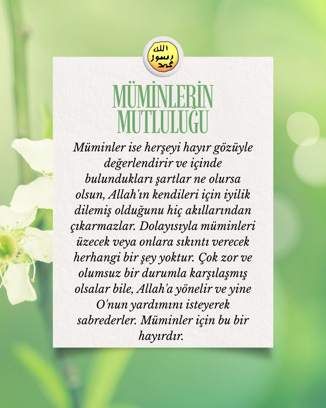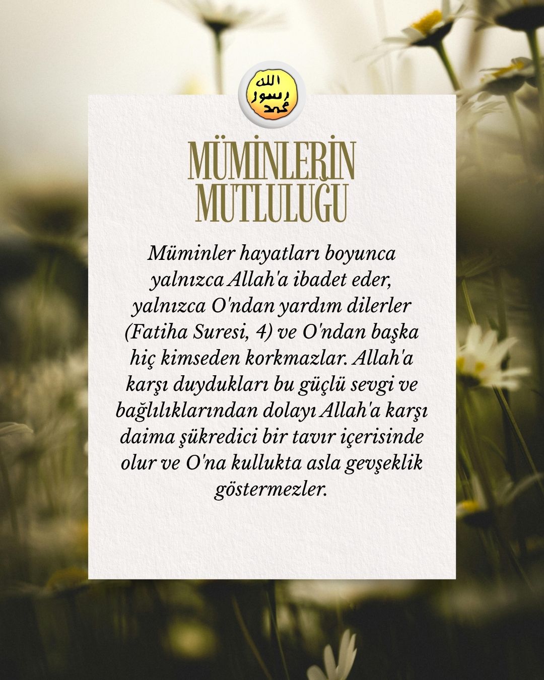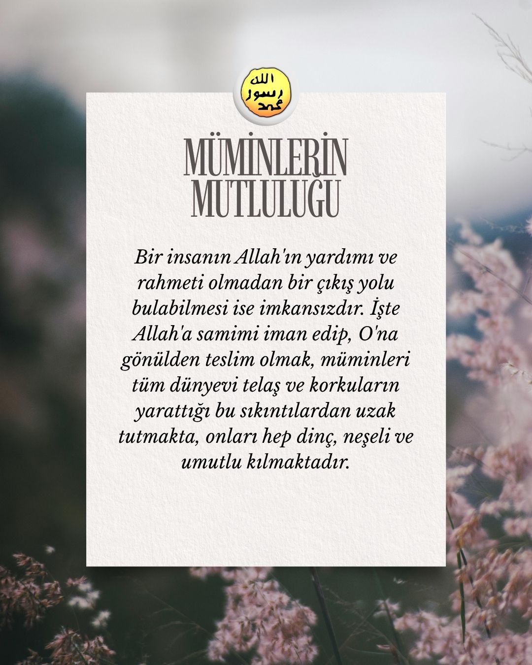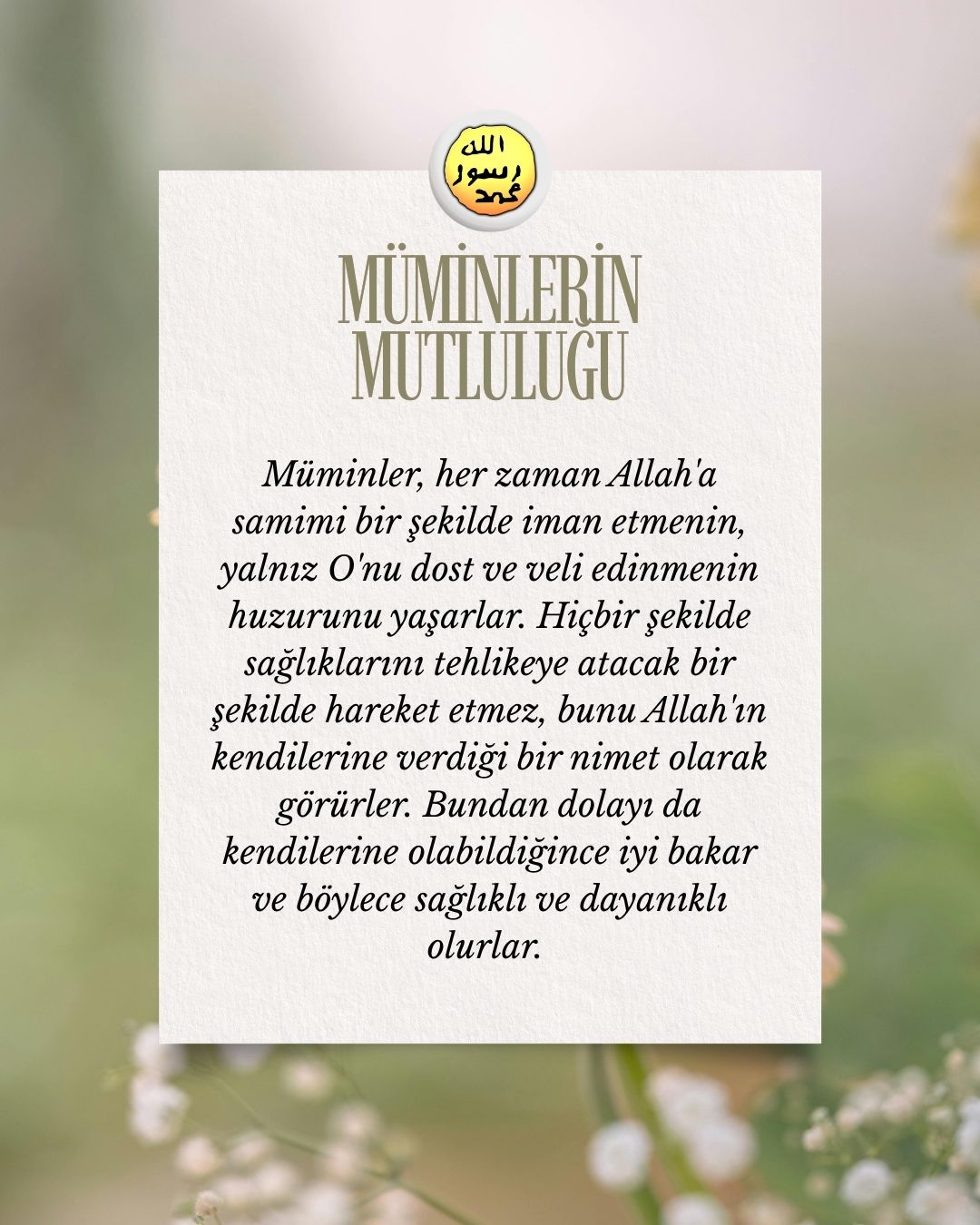 Müminlerin MutluluğuDe ki: "Allah'ın bol ihsanıyla (fazlıyla) ve rahmetiyle, yalnız bunlarla sevinsinler. Bu, onların toplayıp yığmakta olduklarından hayırlıdır." (Yunus Suresi, 58)