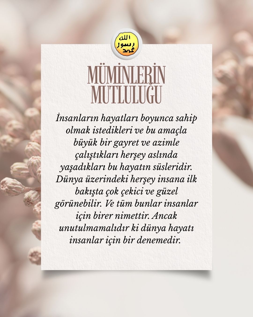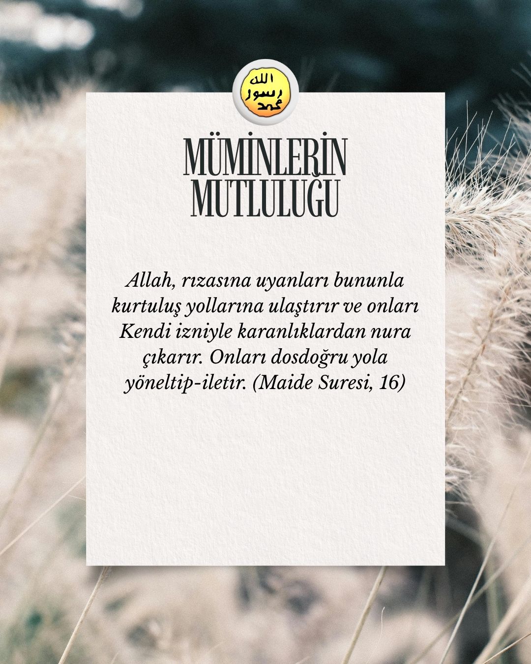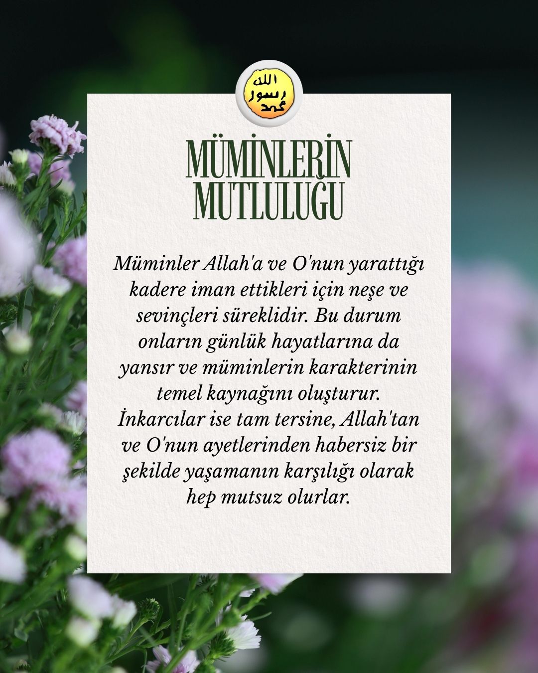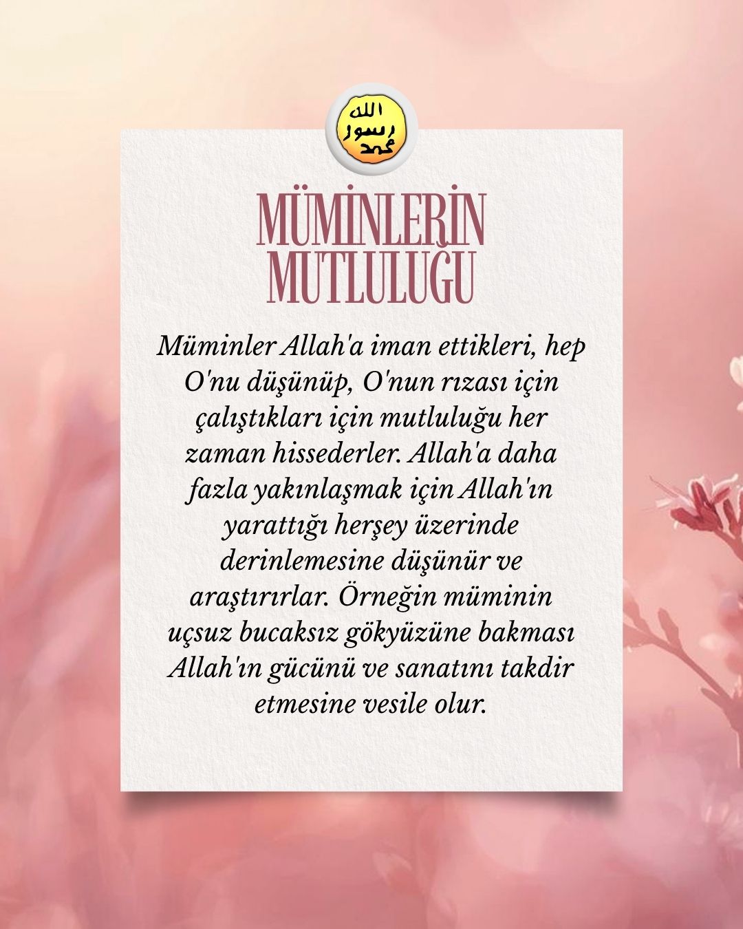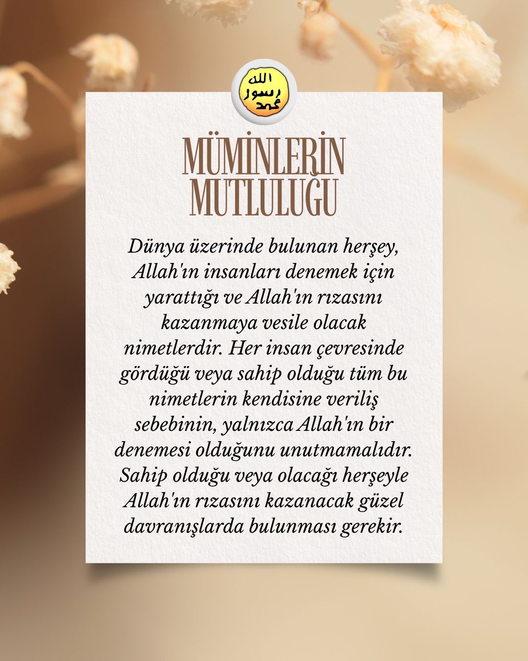 Müminlerin MutluluğuDe ki: "Allah'ın bol ihsanıyla (fazlıyla) ve rahmetiyle, yalnız bunlarla sevinsinler. Bu, onların toplayıp yığmakta olduklarından hayırlıdır." (Yunus Suresi, 58)