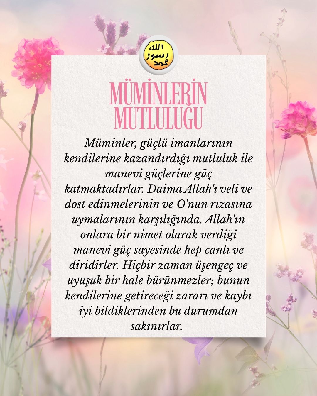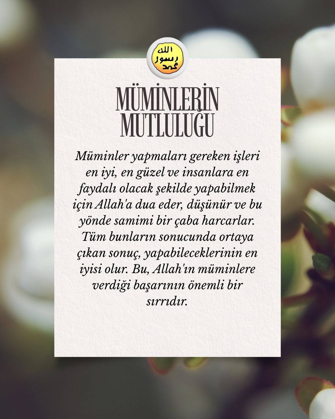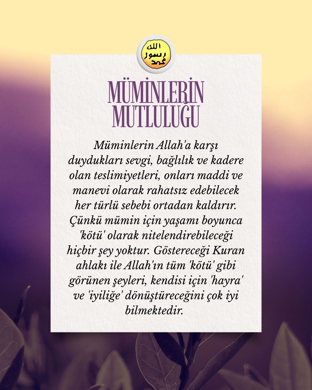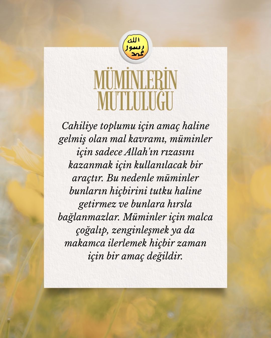 Müminlerin MutluluğuDe ki: "Allah'ın bol ihsanıyla (fazlıyla) ve rahmetiyle, yalnız bunlarla sevinsinler. Bu, onların toplayıp yığmakta olduklarından hayırlıdır." (Yunus Suresi, 58)