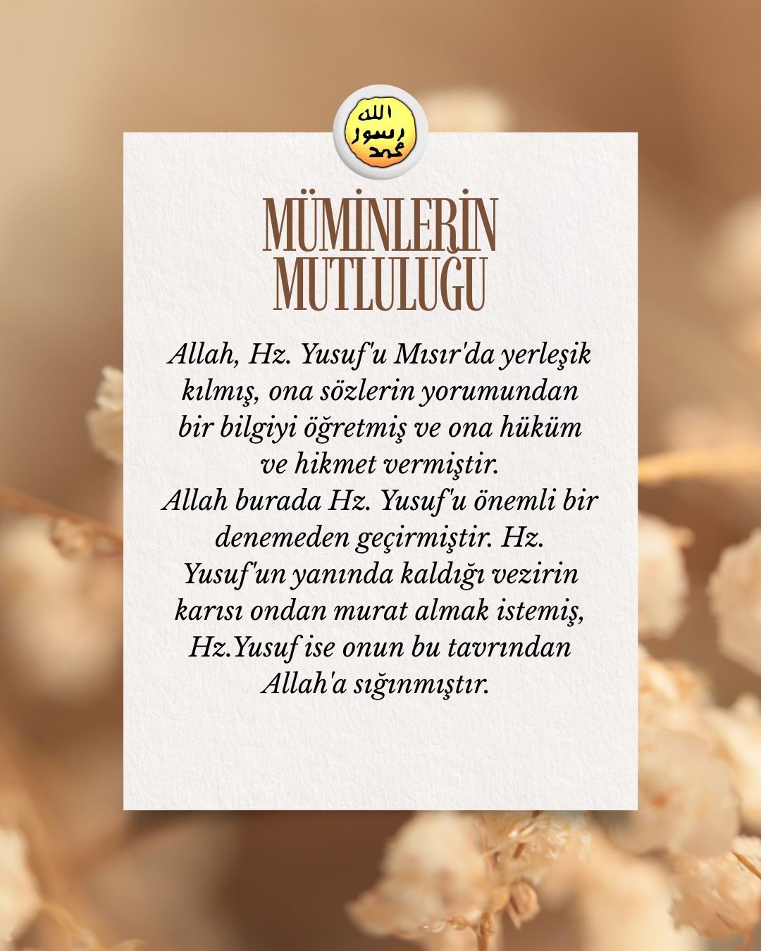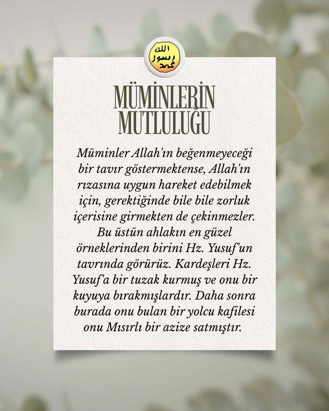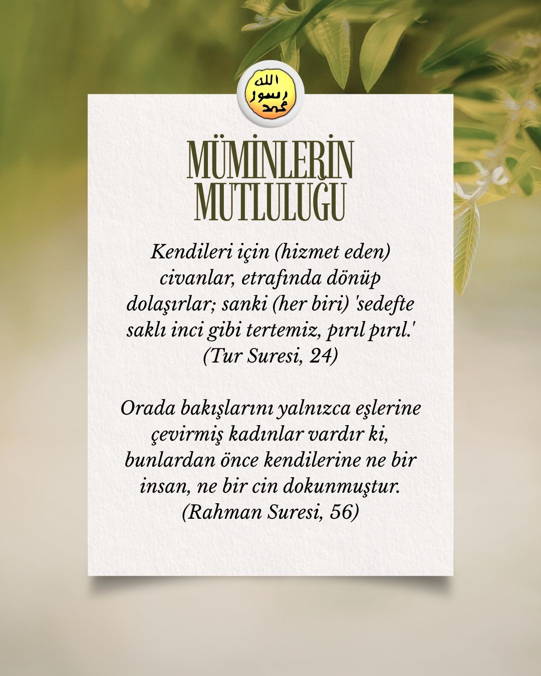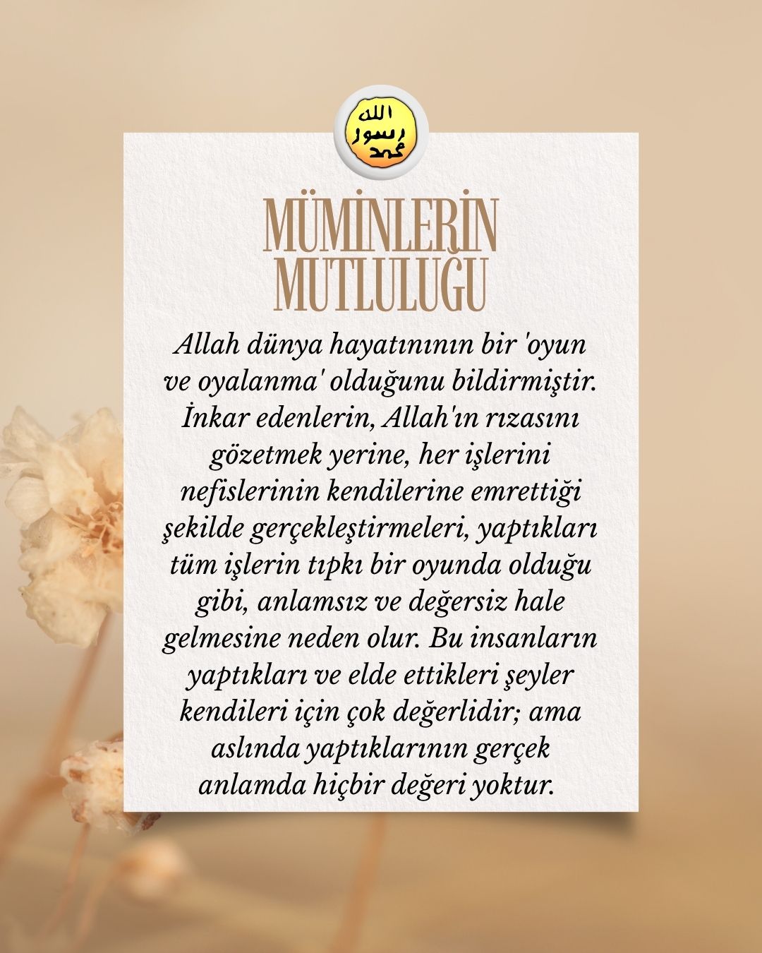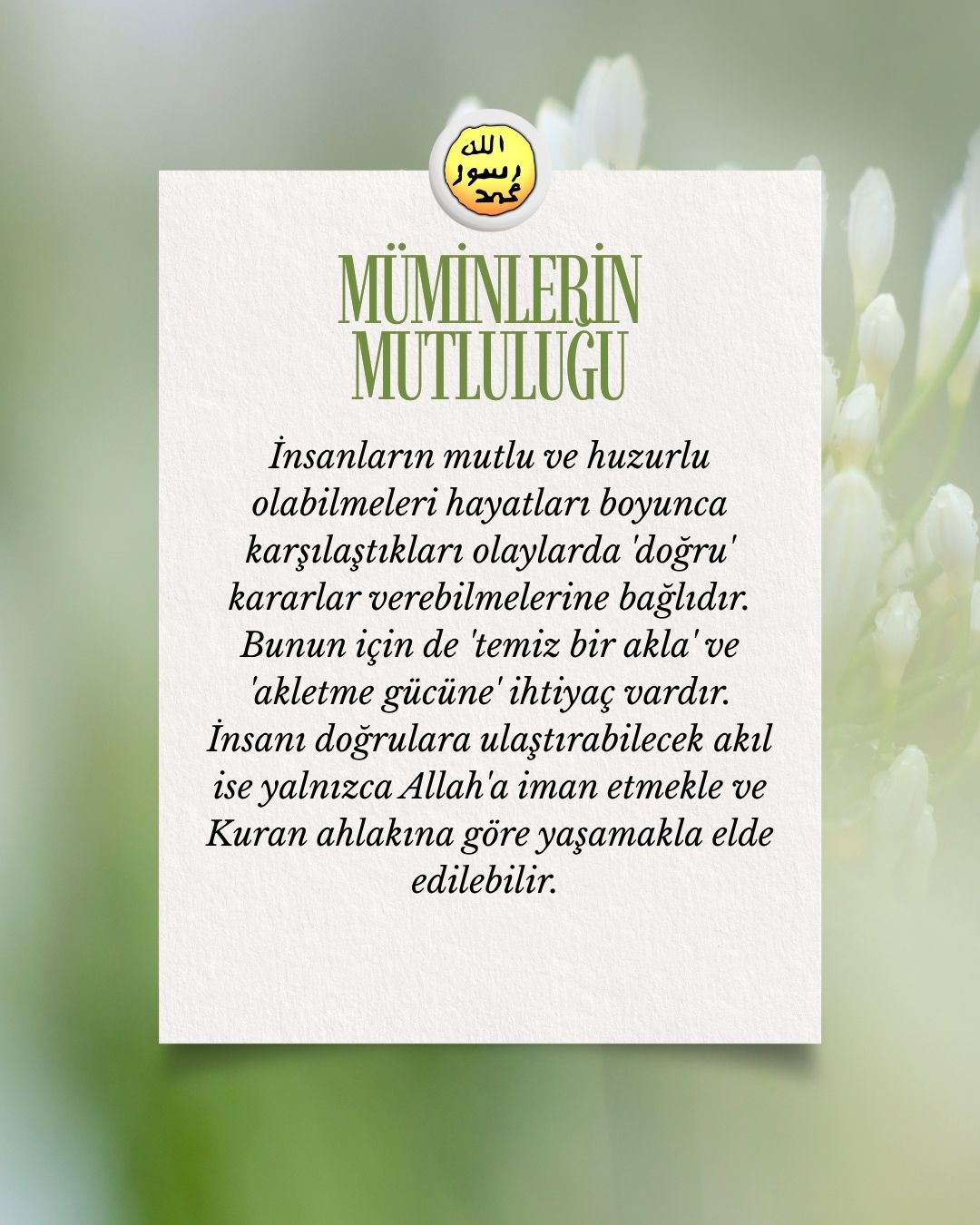 Müminlerin MutluluğuDe ki: "Allah'ın bol ihsanıyla (fazlıyla) ve rahmetiyle, yalnız bunlarla sevinsinler. Bu, onların toplayıp yığmakta olduklarından hayırlıdır." (Yunus Suresi, 58)
