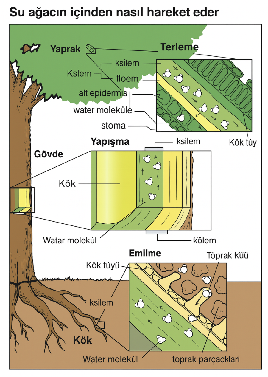 Bilim dünyası, bitkilerin suyu nasıl bu kadar yükseğe taşıdığını açıklamak için “kohezyon-gerilim teorisi”ni öne sürmüştür. Bu teoriye göre, su molekülleri arasındaki kohezyon kuvveti, kılcal borularda bir çekim etkisi yaratarak suyu yukarı taşır. Ancak bu teori, sistemin tüm detaylarını açıklamakta yetersizdir ve sürecin nasıl bu kadar kusursuz işlediği henüz tam olarak çözülememiştir.