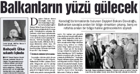 | Mersin TV, 5 Eylül 2008 Adnan Oktar: Türkiye Allah’ın izniyle büyük bir ülke olacak. Türk-İslam Birliği oluşacak. Bütün bu Ortadoğu’yu bütün Balkanları, Asya’yı Türkiye, ağabeylik ruhuyla kucaklayacak İnşaAllah. Ve güzel bir sistem meydana gelecek dikkat ederseniz. Kafkas paktı oluşturuluyor yine demiryolu projemiz var biliyorsunuz. Petrol boru hattı, doğalgaz boru hattı projeleri var. İslam Birliği toplantıları yapılıyor. Türk Birliğinin daha güçlü hale gelmesi için yapılan çalışmalar var. Bunların hepsi hayırlı İnşaAllah. Anadolumuz hep medeniyetlere beşiklik yapmış biliyorsunuz. Anadolu öyle bir yer. Osmanlı döneminde de biliyorsunuz. Bütün Ortadoğu’yu Balkan’ları üç kıtayı buradan yönetmişler İnşaAllah. Yine o şekilde olacak ama sevgiyle dostlukla kardeşlik ruhu içerisinde olacak. Azerbaycan Novoye Vremya, 6 Ekim 2008 Adnan Oktar: Balkanlar hep Osmanlı toprağıdır ta İtalya’nın içlerine kadar. İtalya’ya yakın yerlere kadar hep Osmanlı toprağıdır. Her yerde Osmanlının izleri görülür, Osmanlının güzelliği görülür. Oraları Türk İslam Birliği içerisinde bir huzur şehri, huzur bölgeleri olacaktır... Sadece onlara bereket, bolluk ve huzur sunar Türk İslam Birliği. Bosna’ya da, Arnavutluğa da her yere İnşaAllah Türk İslam Birliği huzur ve mutluluk sunacaktır. |