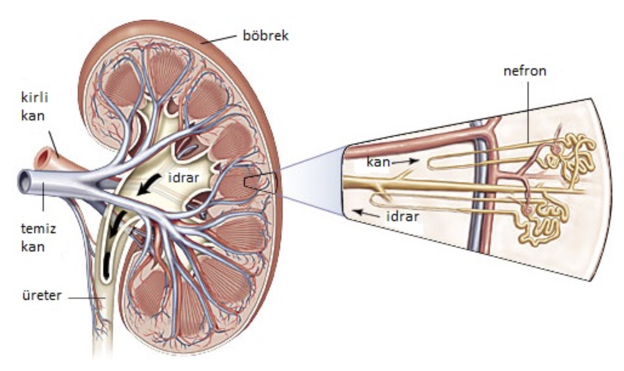 Böbrekler, vücudun idrar sisteminin bir parçası olarak üre, su ve diğer atık ürünlerden idrar üretir. Böbreklerin en dikkat çekici görevlerinden biri, kanı sürekli filtrelemesidir. Böbrekler dakikada yaklaşık 120–125 ml kanı süzer. Bu da günde yaklaşık 170–180 litre kanın işlemden geçirilmesi anlamına gelir. Kavranması için günlük yaşamdan örnek vermek gerekirse, bu miktar dolu bir banyo küvetine ya da 10 büyük damacana su miktarına eşittir. Ancak burada önemli bir detay vardır, bu kadar büyük bir sıvı miktarından sadece 1,5–2 litre idrar üretilir. Çünkü böbrekler, faydalı maddeleri tekrar kana geri kazandırır. Bu işlem ise üç aşamada gerçekleşir. Önce filtrasyon sistemi devreye girer ve kan süzülür, ardından geri emilim özelliği işleme başlar ve süzülen kan içindeki faydalı maddeler vücuda tekrar kazandırılır son olarak ise salgılama sistemi devreye girer ve zararlı maddeler dışarı atılır. Bu üç aşama, mikroskobik ölçekte ama son derece hassas bir kontrolle gerçekleşir.
