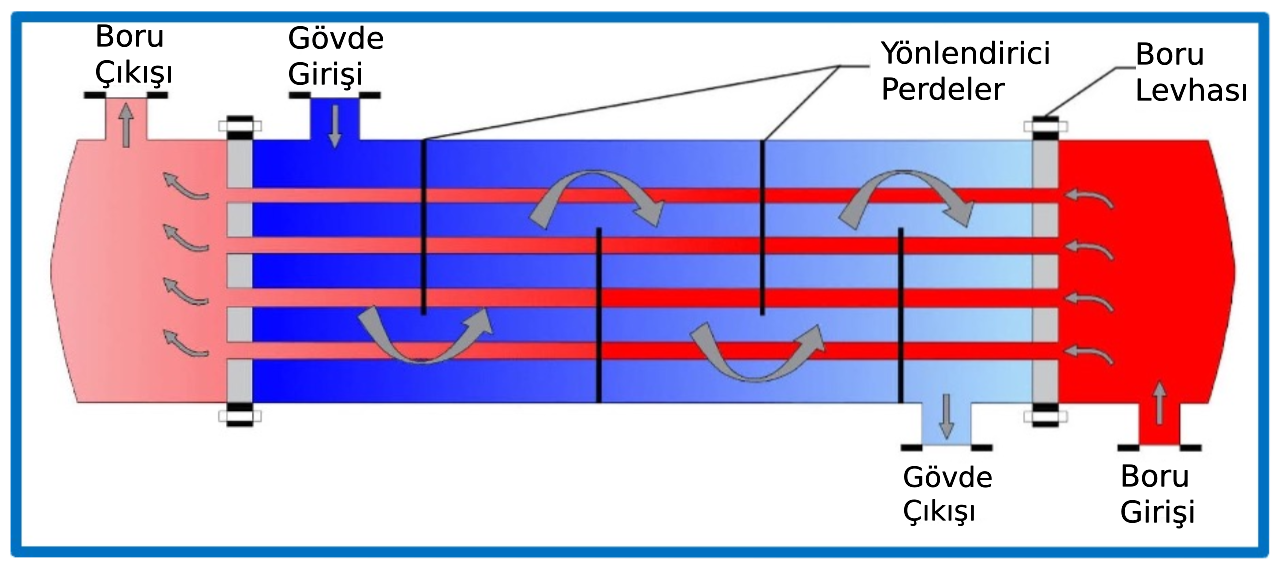 Kısaca eşanjör olarak bilinen bu mekanizma, iki ayrı akışkanın—örneğin bir sıvı ile bir gazın—birbirinden ısı alıp vermesine imkân tanır. “Karşıt akımlı” denmesinin nedeni, bu iki akışkanın birbirine zıt yönlerde akmasıdır. Bu akış düzeni, iki akışkan arasındaki sıcaklık farkını sürekli canlı tutarak ısı transferinin maksimum verimle gerçekleşmesini sağlar. Böylelikle minimum enerjiyle bir bölgeyi istenen sıcaklıkta tutmak mümkün olur.
