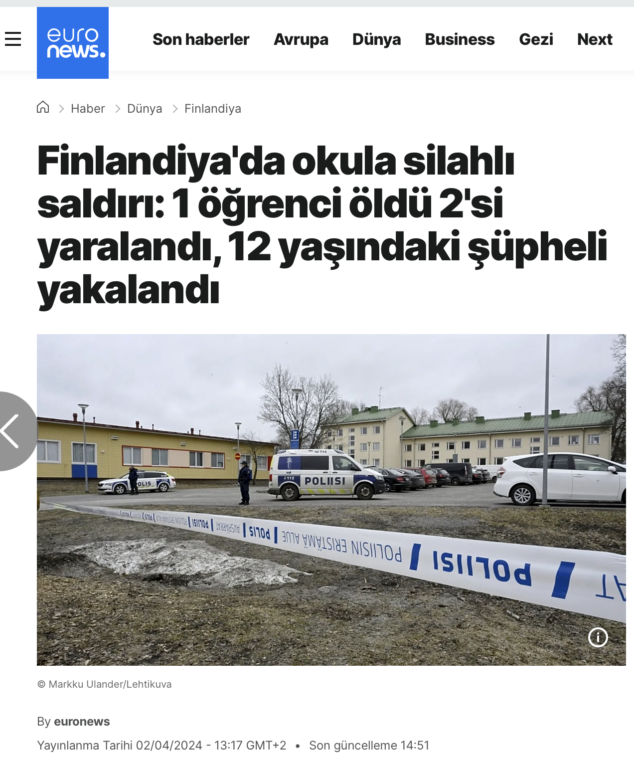(2) “Teen gunman dead from critical injuries who opened fire on Finnish classmates”, CNN, 7 Kasım 2007. (9 Kasım 2007 tarihinde arşivlendi).