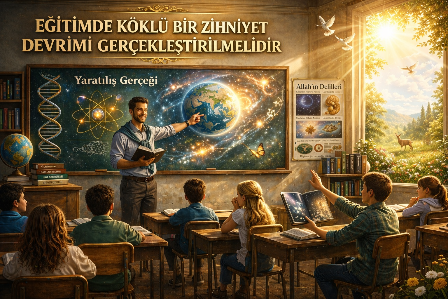 Birinci olarak, eğitimde köklü bir zihniyet devrimi gerçekleştirilmelidir. Şiddetin fikri dayanağı olan materyalist ve çatışmacı bakış açısına karşı, okullarda yaratılış gerçeği anlatılmalı; hayatın tesadüflerin değil, sonsuz bir aklın ve sanatın eseri olduğu bilimsel kanıtlarla ortaya konulmalıdır. Allah’ın varlığının delilleri ve "iman hakikatleri" olarak bilinen bilimsel mucizelerin müfredata dahil edilmesi, gencin dünyayı bir "yaşam mücadelesi" alanı olarak değil, Yaratıcısı tarafından kendisine emanet edilmiş bir güzellik olarak görmesini sağlayacaktır. Bu bilinç, bireyi hem kendine hem de diğer canlılara karşı derin bir saygı ve merhamet beslemeye sevk eder.