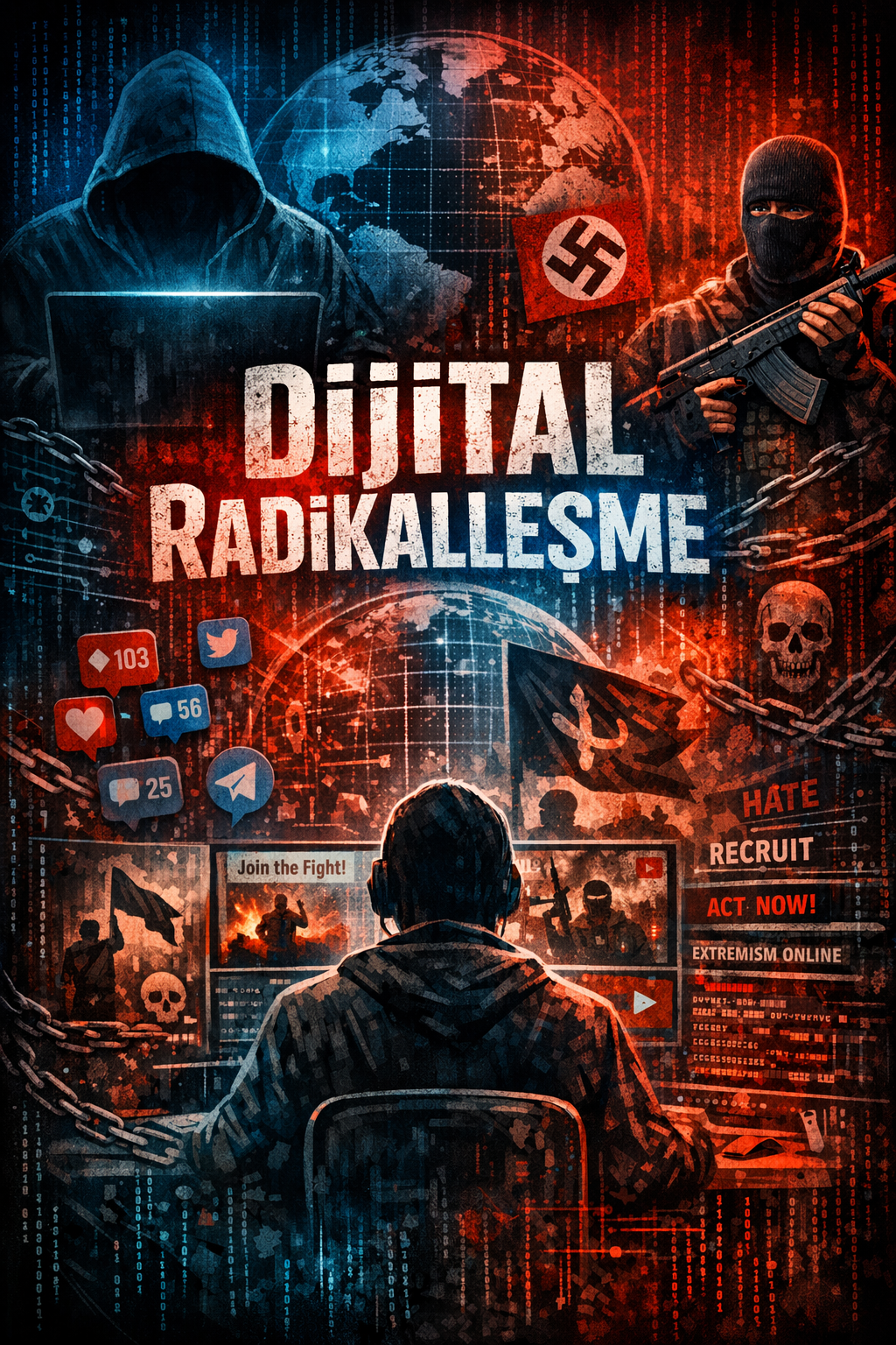 Güncel tartışmalarda en sık başvurulan açıklamalardan biri "dijital radikalleşme" söylemidir. Bu kavram bireyin denetimsiz dijital platformlarda maruz kaldığı şiddet dilini zamanla içselleştirmesini ve bu kapalı grupların etkisiyle yerleşik toplumsal değerlere yabancılaşmasını ifade eder. Bu süreçte birey, kendi öfkesini onaylayan "yankı odalarına" hapsolarak dünyanın sadece bu radikal fikirlerden ibaret olduğu yanılgısına kapılmakta, maruz kaldığı yoğun şiddet içerikleriyle merhamet duygusunu yitirip duyarsızlaşmaktadır. Nihayetinde bir yere ait olma ihtiyacıyla, bu grupların sert kurallarını birer kimlik olarak benimsemektedir.