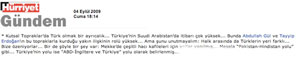Hilal TV, 27 Aralık 2008 Adnan Oktar: Türkiye’nin önderliğini kabul etmeyen hiçbir İslam ülkesi ben şu ana kadar görmedim. Türkiye’nin derliğini kabul etmeyen hiçbir Türk devleti de görmedim şu ana kadar. Daha yeni, Kazakistan yeniden söylediler, Türkiye lider olsun diye. Bütün Türk devletleri Türkiye’nin lider olmasını istiyor. Azerbaycan can atıyor, hatta Ermenistan bile Türkiye ile birleşmek istiyor. Kapılarımızı açalım birlik olalım diyorlar. Bizim tabi bu yazılarımızdan sonra bu izahlarımızdan sonra bu cesareti buldular ve bu düşünce içersine girdiler. Ermenistan, Gürcistan hatta Litvanya hatta Rusya’da bile Türk birliğinin içinde yer alacaktır. Türk İslam Birliğinin içinde yer alacaktır inşaAllah. Uşak ART TV, 19 Ağustos 2008 Adnan Oktar: Türk Milleti imanlıdır, Allah’tan korkar, akılcı hareket eder, makuldür, işte böyle bir millete Allah İslam’ın bayraktarlığını nasip ediyor. İslam ahlakını yayma görevini, böyle bir millete vermiş oluyor Allah inşaAllah… Örnek, İslam’ı yaşayan bir millet, mesela şu an sorun İslam aleminde herkese sorun. En güzel İslam’ı kim yaşıyor deyin. Türkiye diyeceklerdir. En makul en tutarlı, en adil, aklıbaşında yaşayan Türklerdir. En temiz, tertemizlerdir. Onun için ittifak var, Türkiye önder olsun diyorlar, bütün Türk alemi de İslam alemi de bunu söylüyor. | | Hürriyet, 4 Eylül 2009